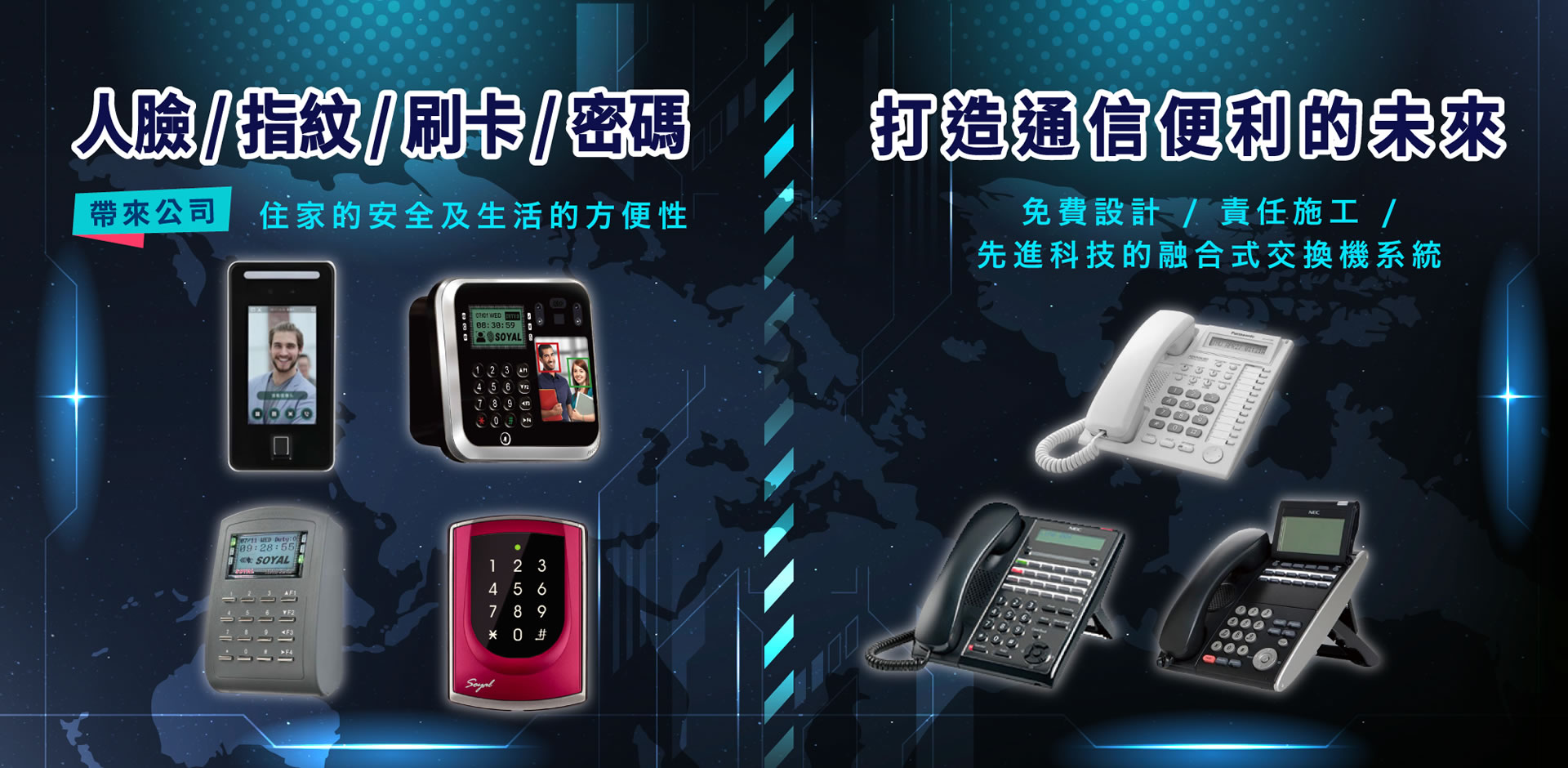 營業性質AI及LOT科技一直在進步,仰賴弱電系統的設備,應用在實體的生活中,不容缺席減免,舉凡如:監視系統、電話總機、門禁刷卡、區域網路、人臉辨識......等等,這些都是我們的專業,並具備優秀的施工團隊及老闆經驗豐富,朝著目標『問題的解決』及『愉快的感覺』前進。